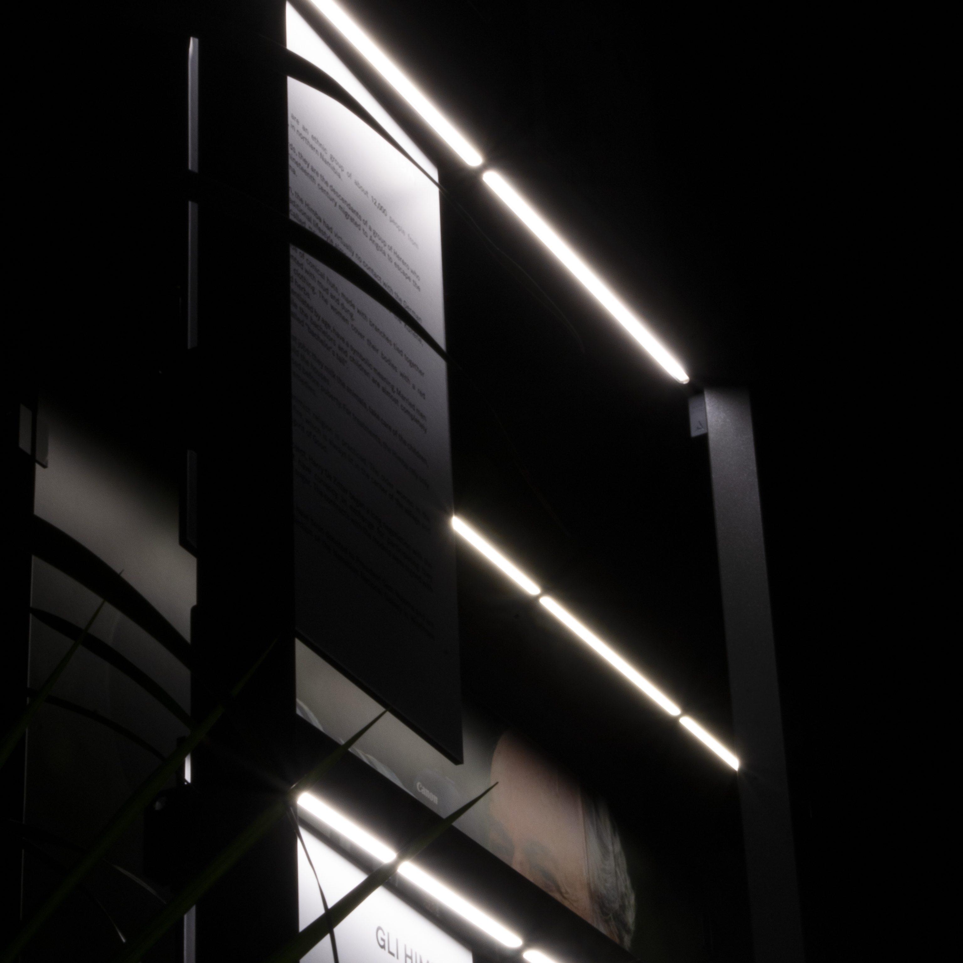 The system has been carefully customized for the collection, highlighting the contrast between the 18th-century frescoed location and our modern and innovative solutions. With the room left in semidarkness, TondoQuadro’s premium quality light makes the dramatic tones of the photographs stand out in a unique way, creating an elegant atmosphere.