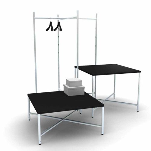 Made of round 3 cm / 1 3/16” steel tubes and hidden aluminum pressure die casted connectors, Plot is a system with a strong freestanding nature and a technological soul. Its inner technology and high reconfigurable power allow to obtain a huge list of freestanding items starting from tables up to dynamic solutions for the middle area.